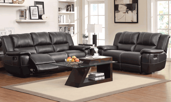 Includes 100% Leather Sofa and Love Seat. Available in 4 colors: Black, Grey, Red, Brown.